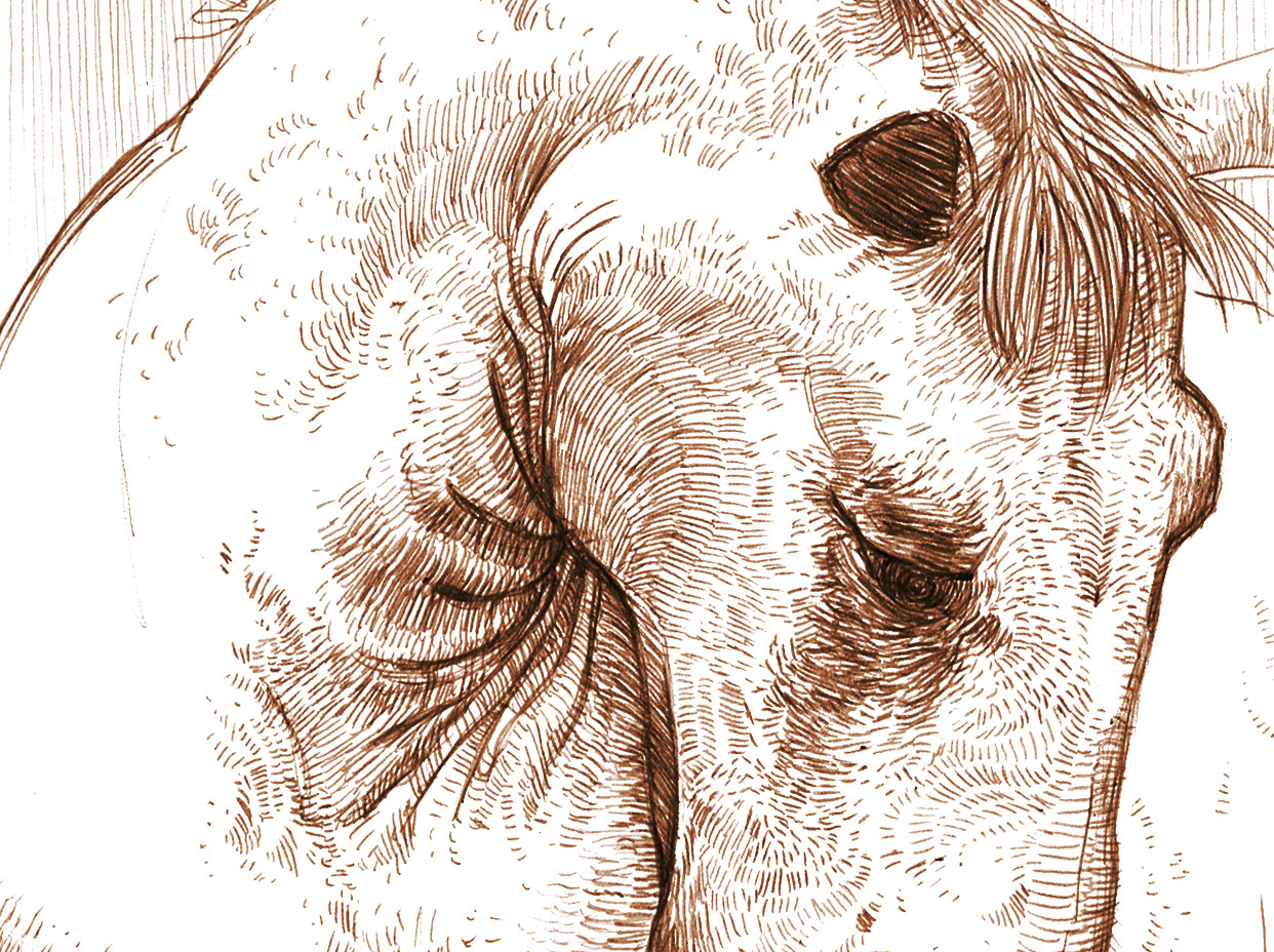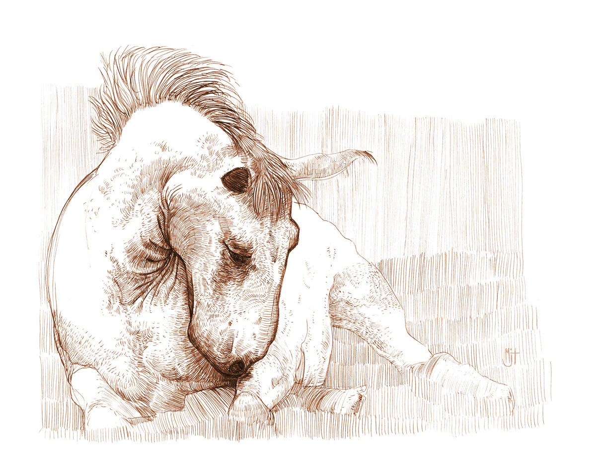 sketch focusing on lines and the spiral of a horses neck in this position.