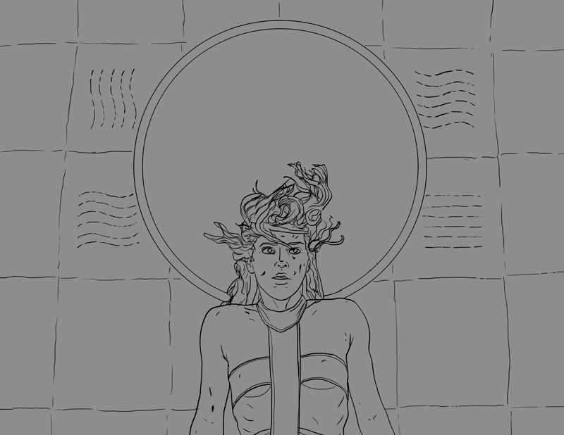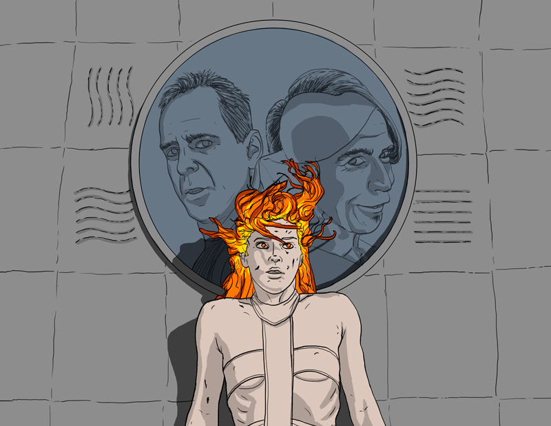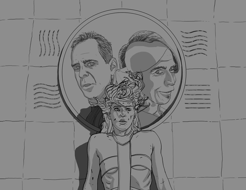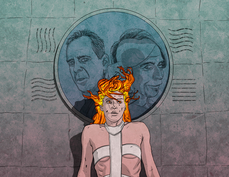 Added some some fun faces of the other characters. It took a while, as I watched the film, to find the expression I thought fit the piece. Then I followed with some blocky shadows.
