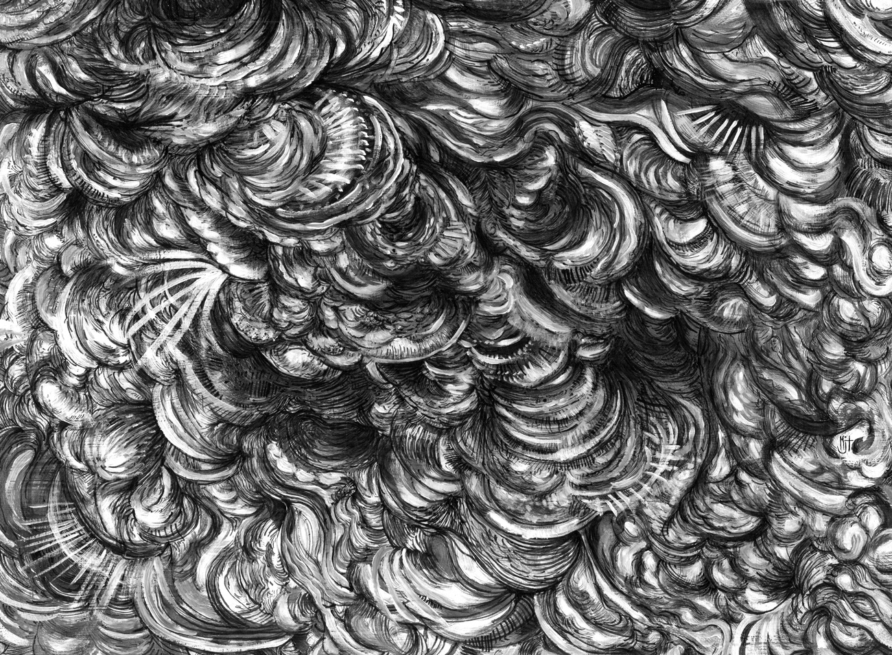 This is my first personal project completed in my new studio. I felt drawn to create a sense of movement and wave like motions with this, while still focusing mainly on lots of marks and lines. It was a lot of fun to create and these types of non-representational artworks are incredibly therapeutic for my creative being.