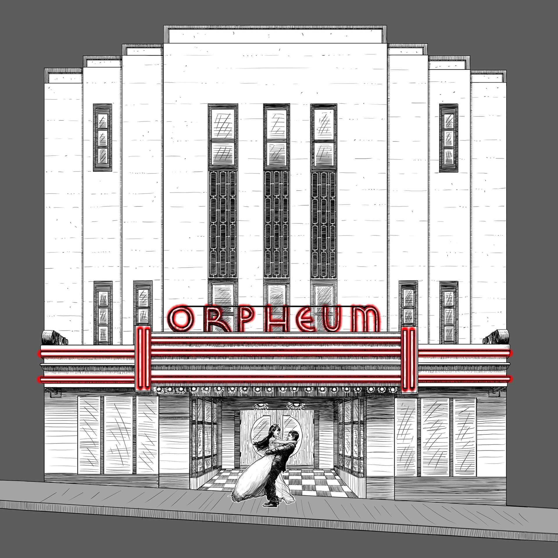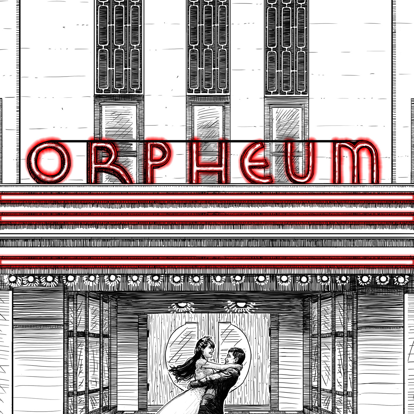 Poster for an old theater renovation project based in Oxford NC. They turned it into a wedding venue and I was lucky enough to have been called upon to draw the re-imagined look.
